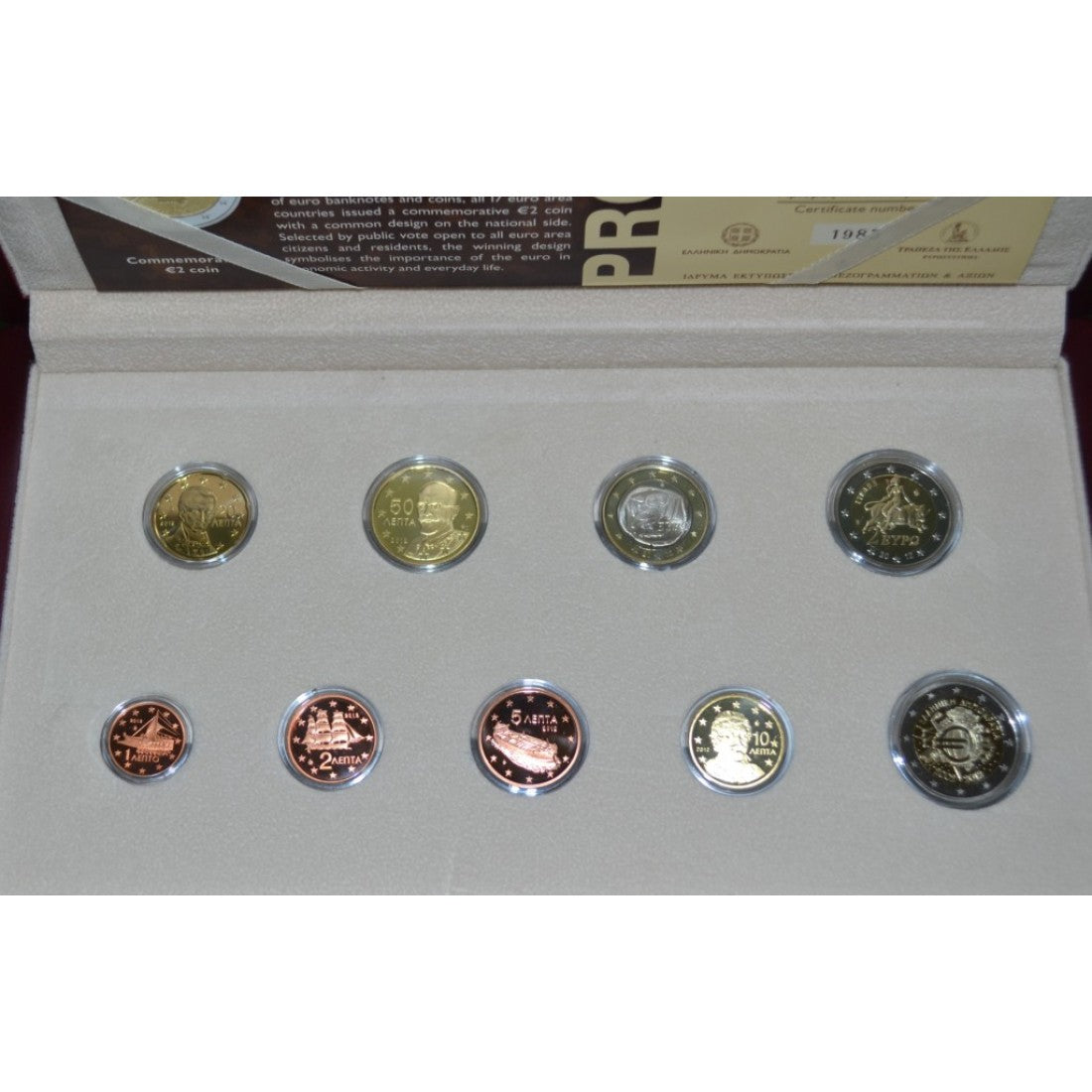 Περιέχει τα 8 ευρωνομίσματα και το αναμνητικό 2ευρο για τα δέκα χρόνια ευρώ σε ποιοτική κοπή Απόδειξη.