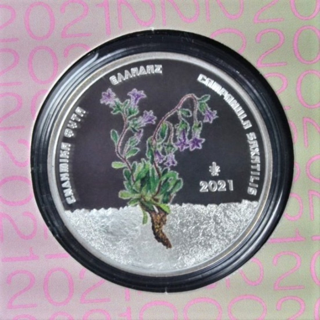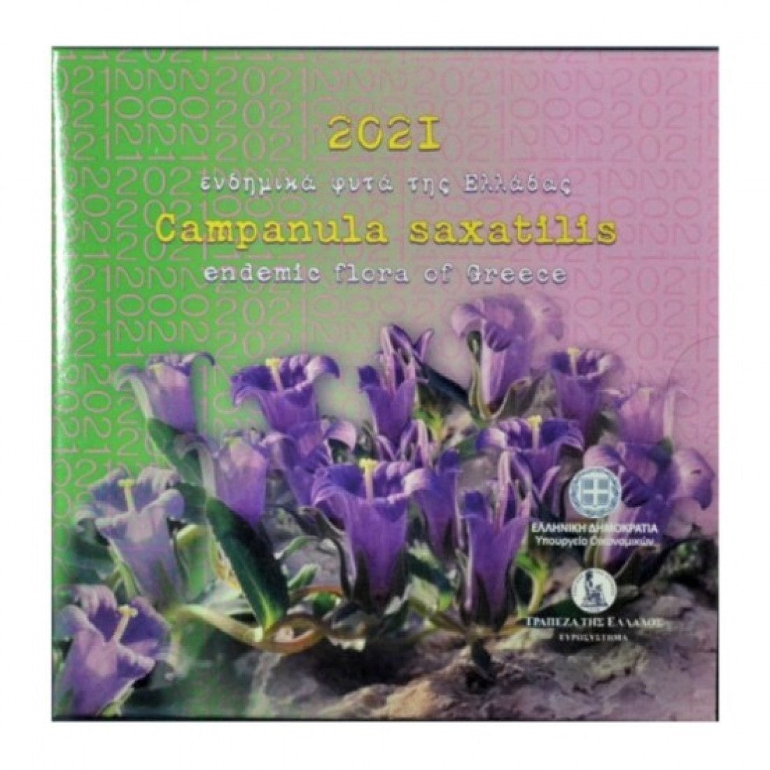 ΕΛΛΑΣ, 2021, blister, 5 ευρώ 2021. Αναμνηστικό έγχρωμο χαλκονικέλινο νόμισμα για τα Ενδημικά φυτά της Ελλάδος, Campanula Saxatilis.