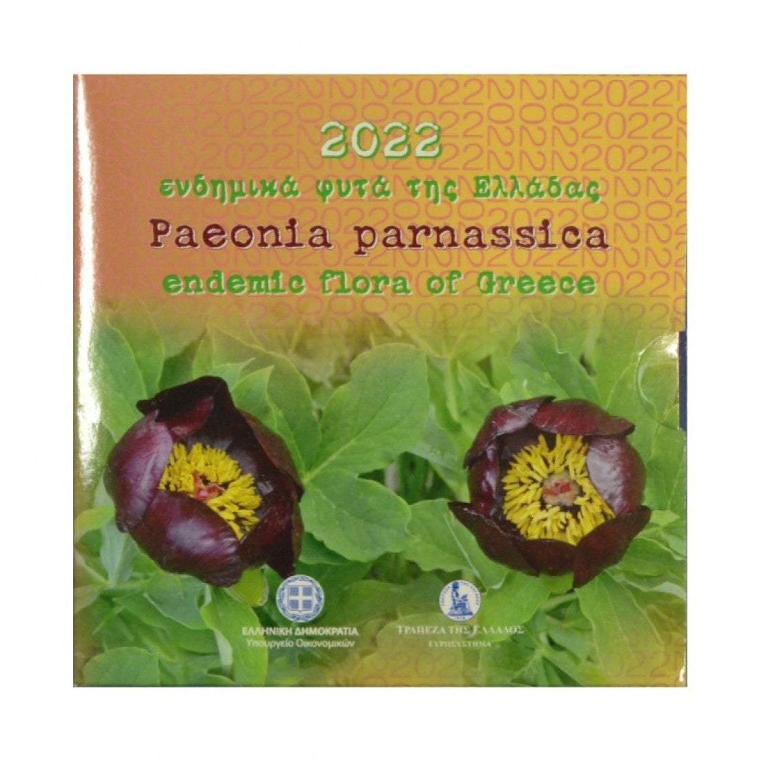 ΕΛΛΑΣ, 2022, blister, 5 ευρώ 2022. Αναμνηστικό έγχρωμο χαλκονικέλινο νόμισμα για τα Ενδημικά φυτά της Ελλάδος, Paeonia Parnassica.